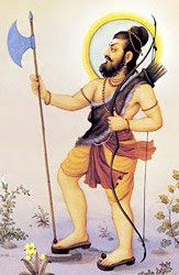 Nothing could placate the relentless Parashurama, seething with fury, miserable at his father`s murder by the Kshatriyas. Twenty-one times over he clashed with the warrior class, and smashed with his axe, every coercive Kshatriya, filling seven lakes with the blood of his foes. As Vishnu’s avatara he established dharma or righteousness on earth and eliminated evil.